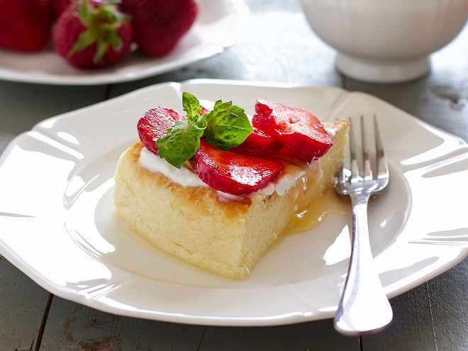 Nettoyez, équeutez et coupez en fines tranches les fraises. Nettoyez et épongez les feuilles de menthe. Démoulez le cheesecake sur un plat de service. Nappez-le de quelques cuillerées de fromage blanc sucré (plus ou moins selon vos goûts) puis répartissez sur le dessus les fraises et les feuilles de menthe fraîches. Dégustez bien frais.